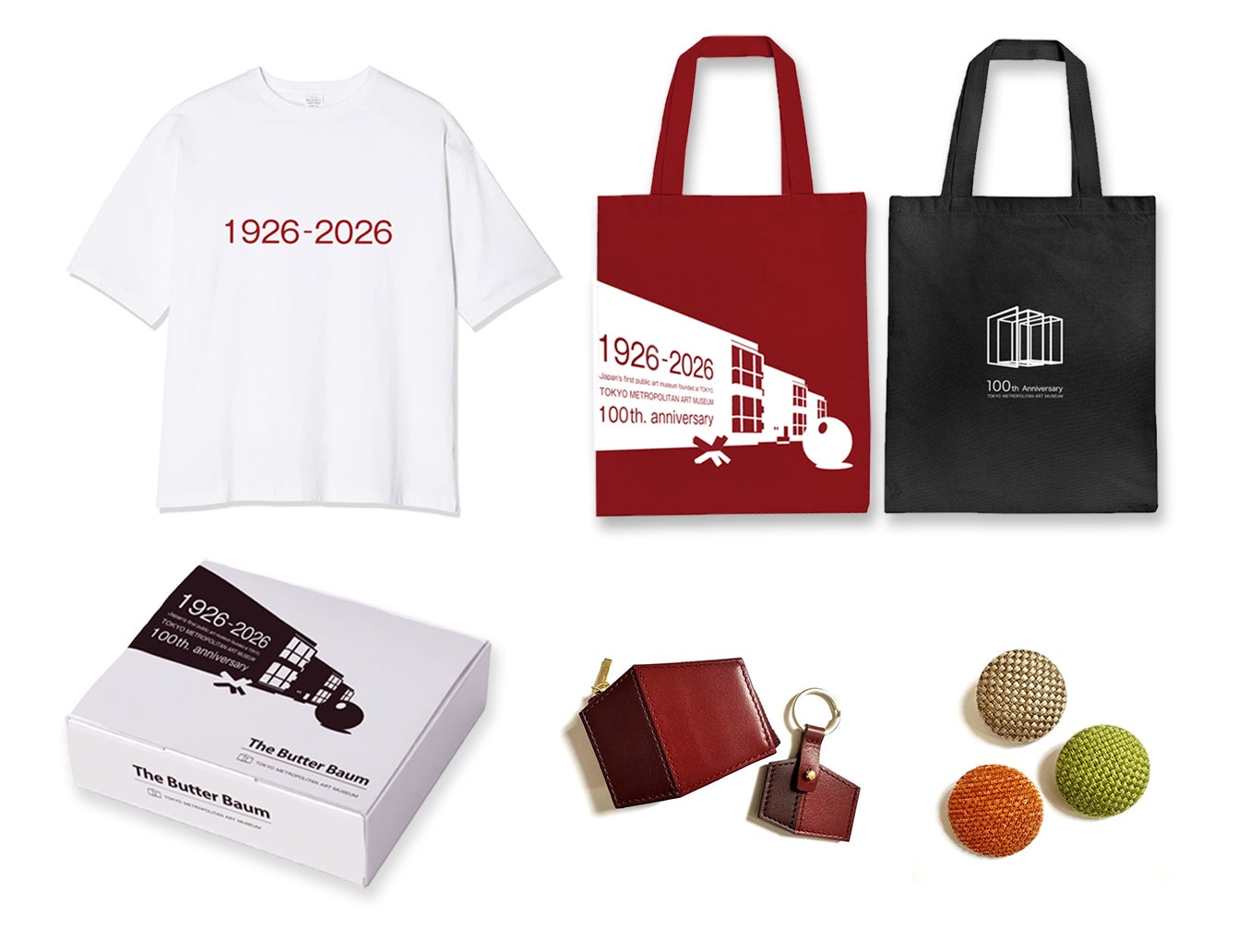 東京都美術館のミュージアムショップにて、Tシャツ、トートバッグなどのアパレルから、ミニボトル、ツバメノート、ピンバッジなどのグッズ、バームクーヘン、オリジナルコーヒーギフトなど、100周年ロゴ入りのアイテムを多数展開。さらに台東区の企業やアーティストとのコラボレーショングッズなど、ここでしか出会えない様々な商品を取り揃えます。