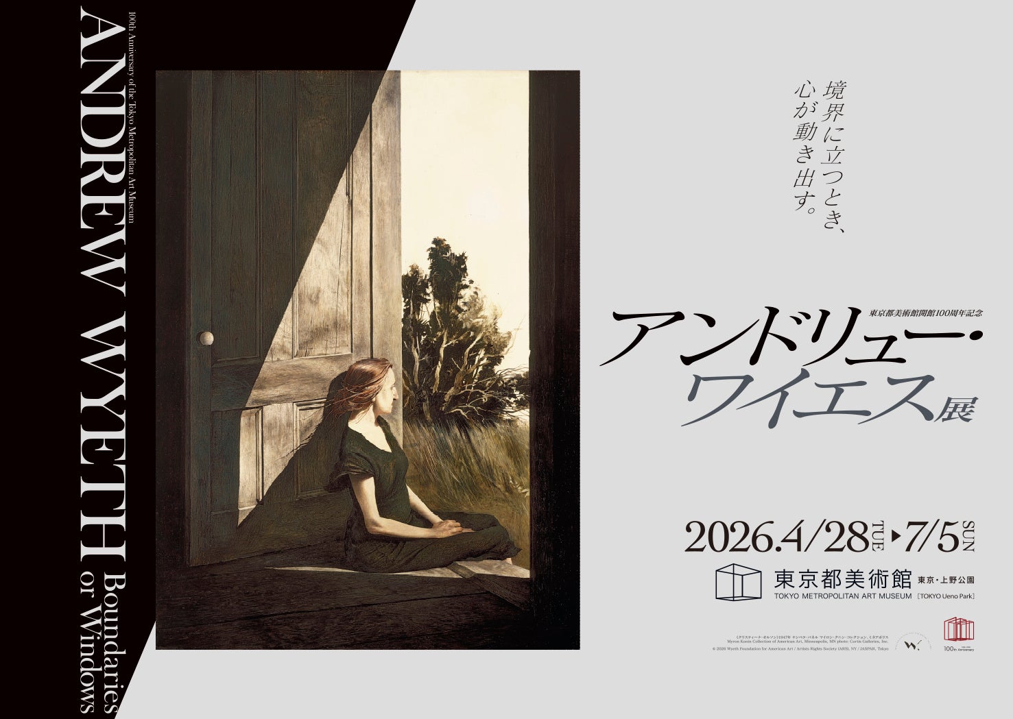 「開館100周年記念ウィーク」初日には、「東京都美術館開館100周年記念 アンドリュー・ワイエス展」[会期:4月28日(火)~7月5日(日)]が開幕します。本展は、20世紀アメリカ具象絵画を代表する画家アンドリュー・ワイエス(1917–2009)の17年ぶりとなる回顧展です。初来日作品10点以上を含む約100点の作品を展示し、その画業の全貌を紹介します。