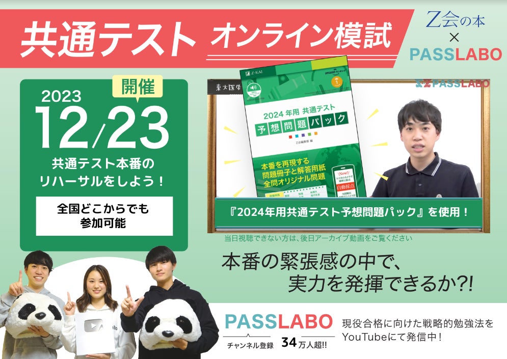 YouTubeにて、大学受験、志望校合格に向けた有益な情報を発信し続けているPASSLABOと、Z会のコラボによる全国オンライン模試を実施します!
