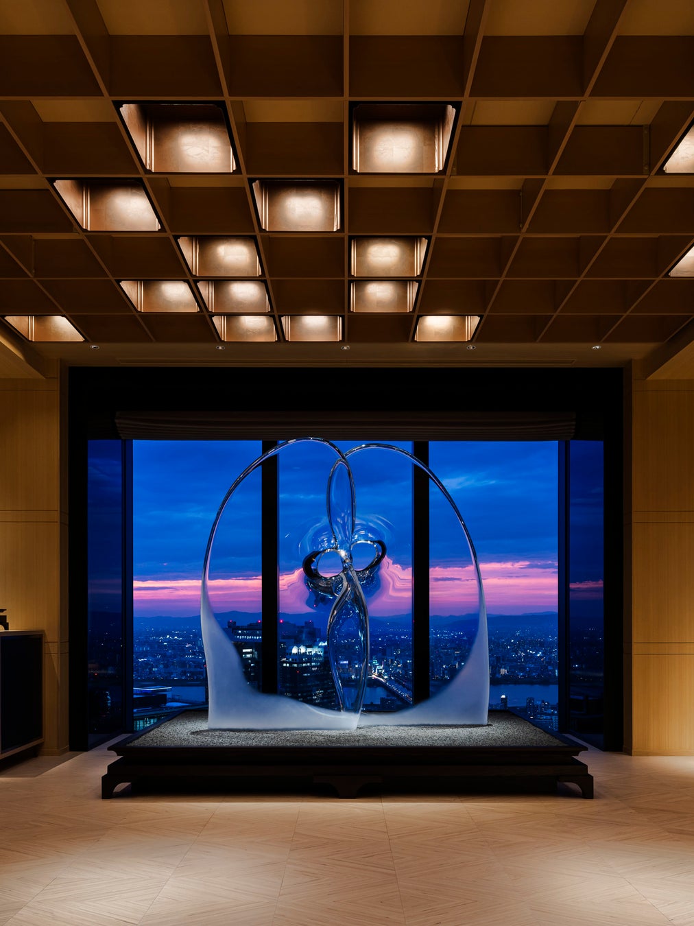 大阪から世界へ、過去から未来へ発展していく日本の叡知が集まる場所を表現した最上階の「SPECIALTY SALON」。世界・未来へ伝えるべきものを吸い寄せた「雲上」を体現し、エネルギーを満たし、新しい発想を生み出すための特別な空間。 Photo: ナカサ&パートナーズ