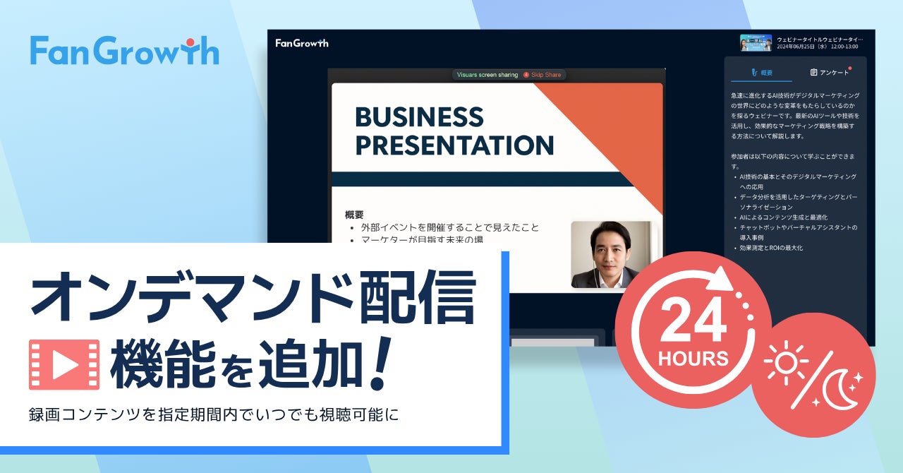 ウェビナーPDCAクラウド「FanGrowth」オンデマンド配信機能を追加。録画コンテンツを指定期間内でいつでも視聴可能に