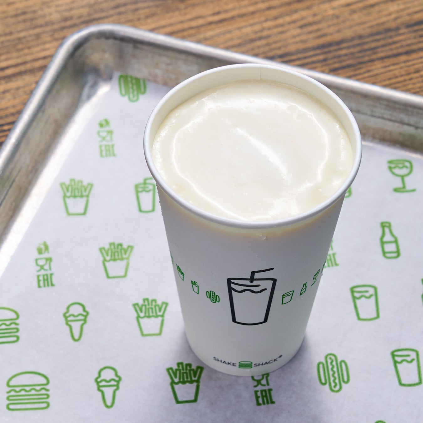 シェイク シャックでは、ご注文を受けてから専用のミキサーで材料を混ぜ合わせ、できたてのシェイクをご提供しています。ベースとなるフローズンカスタードは店内で丁寧に仕上げ、なめらかでクリーミーな味わいです。フレーバーは、バニラ、チョコレート、ストロベリー、ブラック&ホワイト、キャラメル、ブラックセサミ、コーヒーの全7種類。アメリカで長年愛されてきたシェイクを、ぜひお楽しみください。