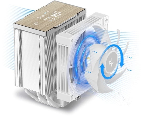 「AK700 DIGITAL」シリーズは、7本のヒートパイプを搭載するハイエンドモデルの空冷CPUクーラーです。ブラックとホワイトの2色をラインナップしており、ホワイトモデルは木目調デザインのトップカバーにデジタルディスプレイを搭載。デザイン性を重視したPCへの組み込みにも最適です。