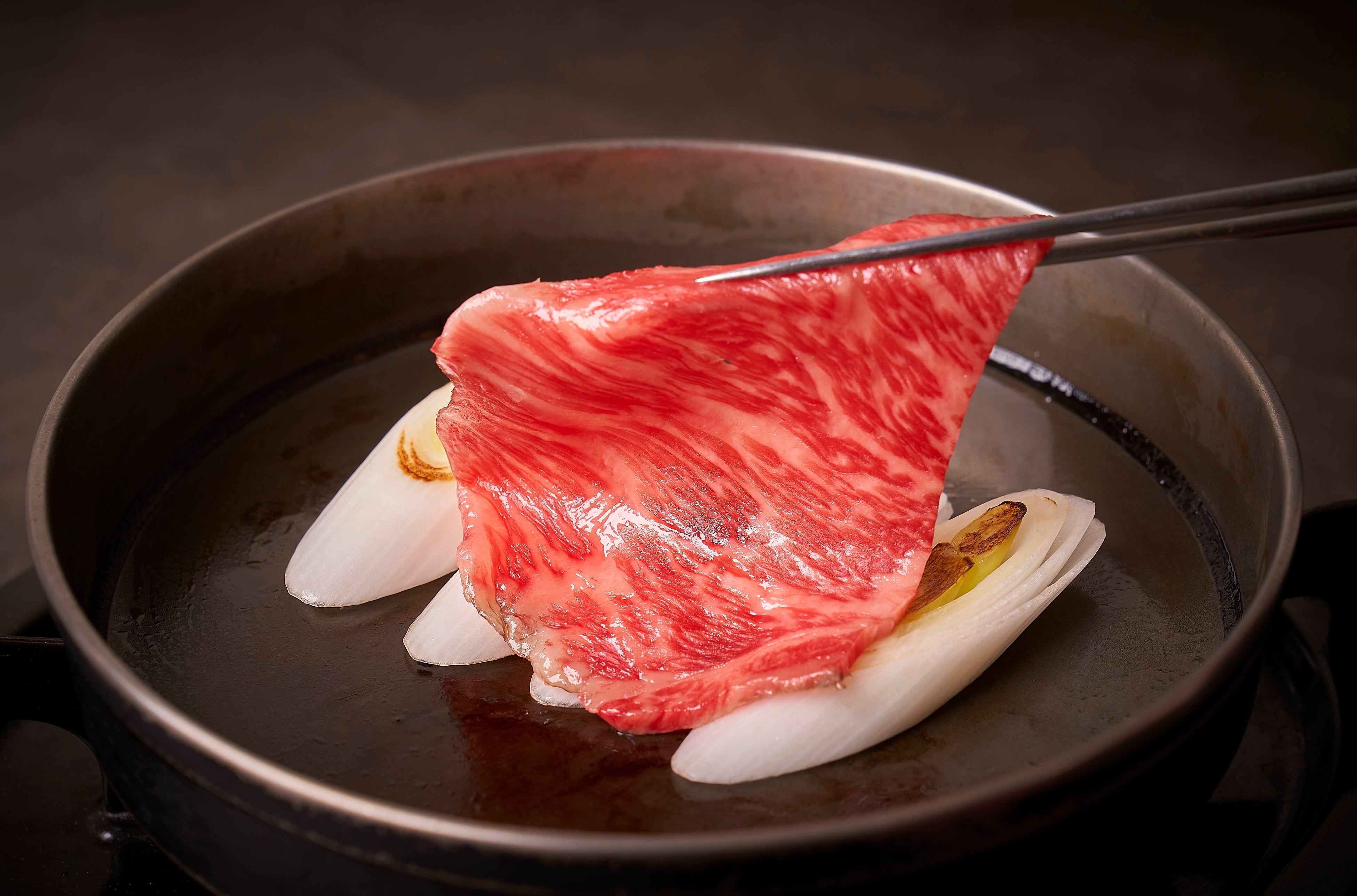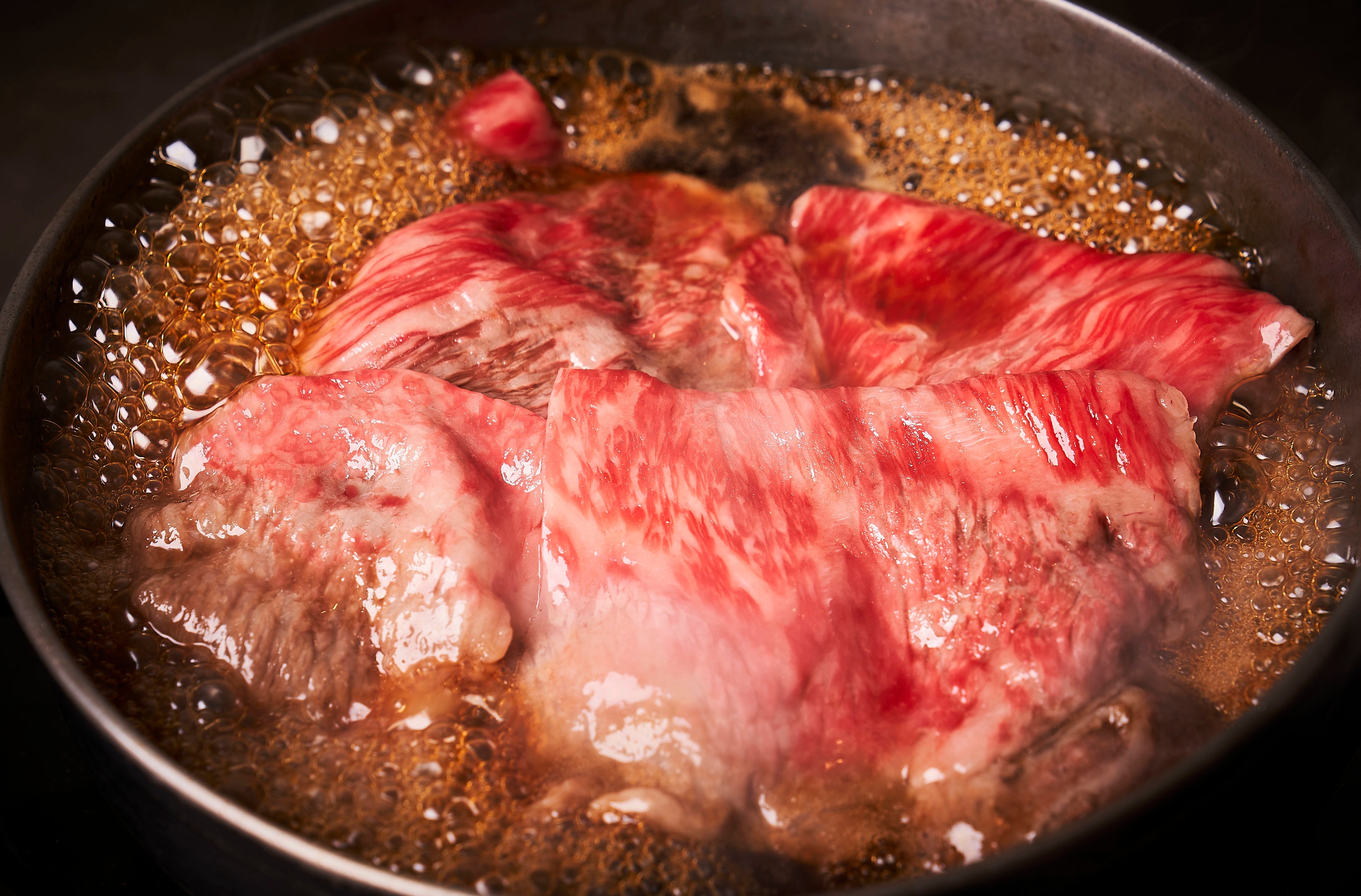 店舗には精肉売店も擁し、すき焼きに使用する食材(肉)は黒毛和種のメス牛肉に限定。2017年には「適サシ肉」を宣言し、A5等級の使用をやめるとともに、「適サシ肉」を商標登録(登録第5980224号、登録日:2017年9月15日)するなど、「すき焼き文化」の醸成に努めてきました。