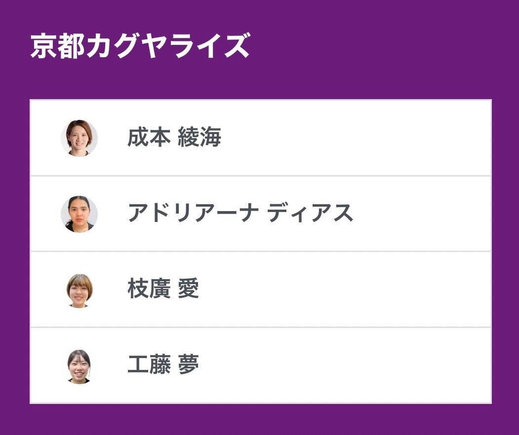 ノジマTリーグ 2023-2024シーズン 公式戦 8月19日 開催 京都カグヤライズ vs 木下アビエル神奈川 ベンチ入り選手発表