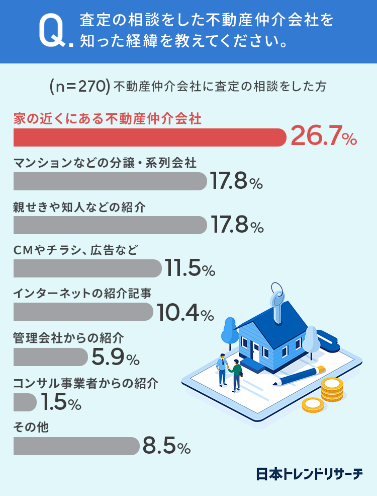 「家の近くにある不動産仲介会社」がもっとも多く、26.7%という結果になりました。