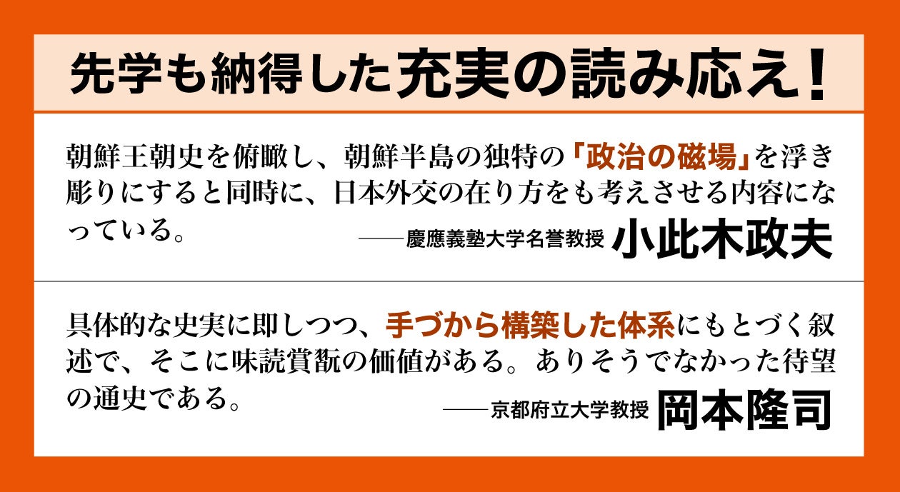 「朝鮮王朝史を俯瞰し、朝鮮半島の独特の「政治の磁場」を浮き彫りにすると同時に、日本外交の在り方をも考えさせる内容になっている。」