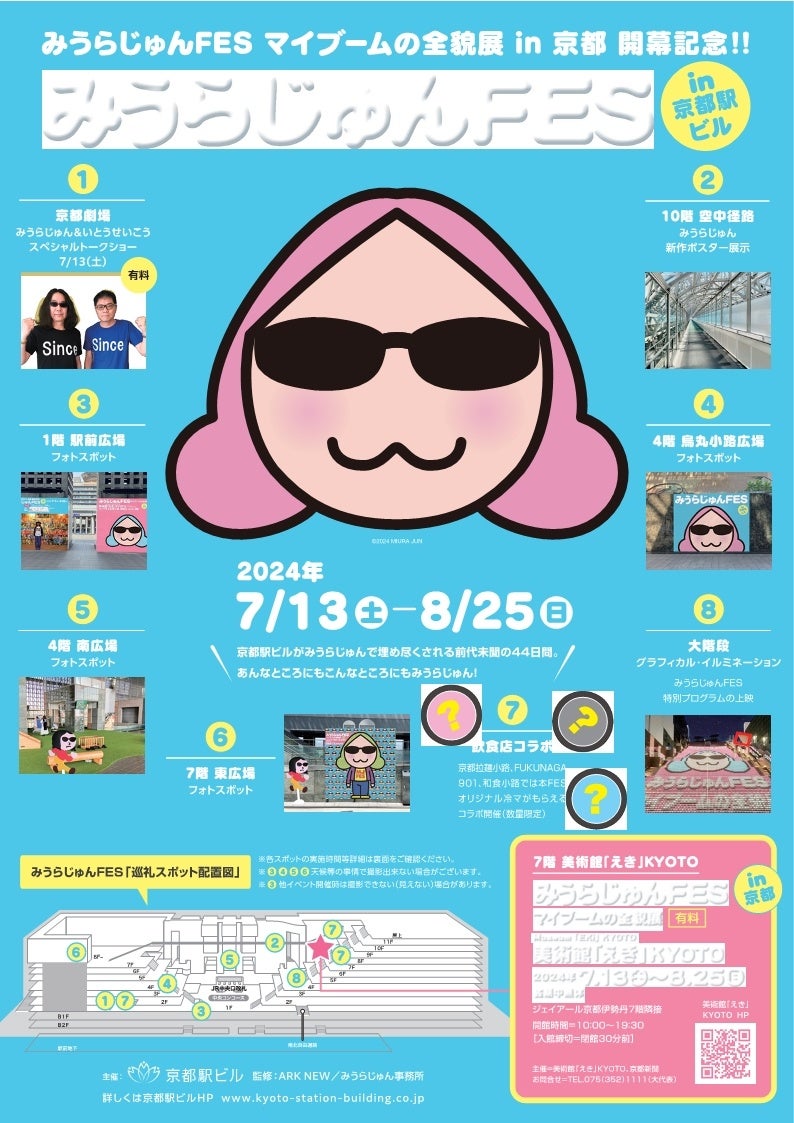 みうらじゅん氏は地元京都のご出身。「マイブーム」「ゆるキャラ」などの命名者であり、独自のフィルターを通じて様々な収集や創作をするみうらじゅん氏の膨大な数の収集品と創作の活動を一堂に展示する展覧会の開幕を記念し、京都駅ビル全体で『みうらじゅんFES』を盛り上げます。期間中、全国各地からたくさんの人が訪れ、SNSなどでも数多く発信が予想されます。