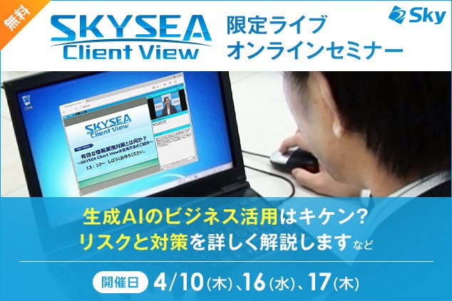 Sky株式会社は、クライアント運用管理ソフトウェア「SKYSEA Client View」を活用した情報漏洩対策やIT資産管理などについてご紹介する「SKYSEA Client View 限定ライブ オンラインセミナー」(受講費無料)を随時開催しています。