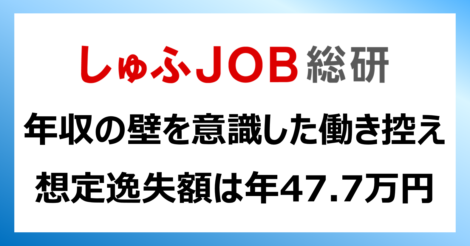 「年収の壁」を意識した“働き控え”で失っている賃金【想定逸失額】 年47.7万円/最大約80万円