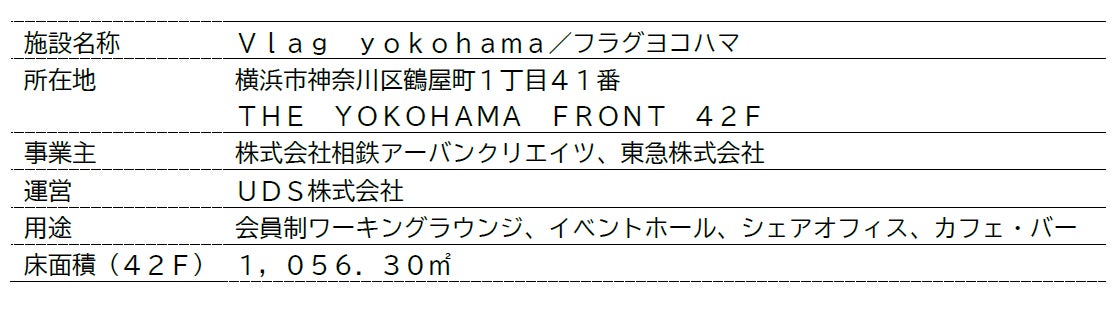 株式会社相鉄アーバンクリエイツ(以下、相鉄)、東急株式会社(以下、東急)、UDS株式会社(以下、UDS)の3社が共同で運営する、事業共創のための複合施設「Vlag yokohama」(読み:フラグヨコハマ、以下、本施設)は、本日11月7日(木)、新たに下記の事業共創パートナーと協業することを決定いたしました。