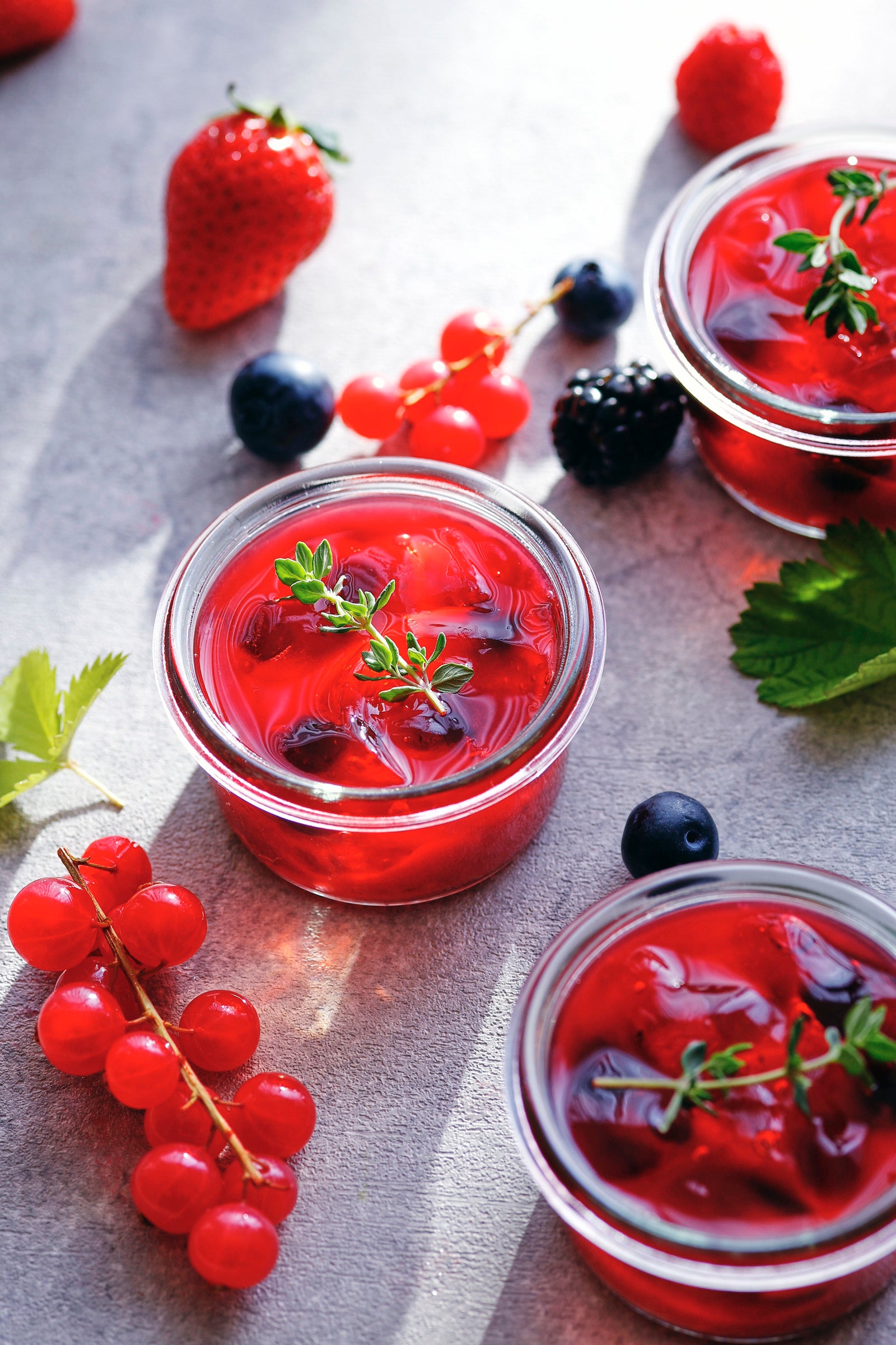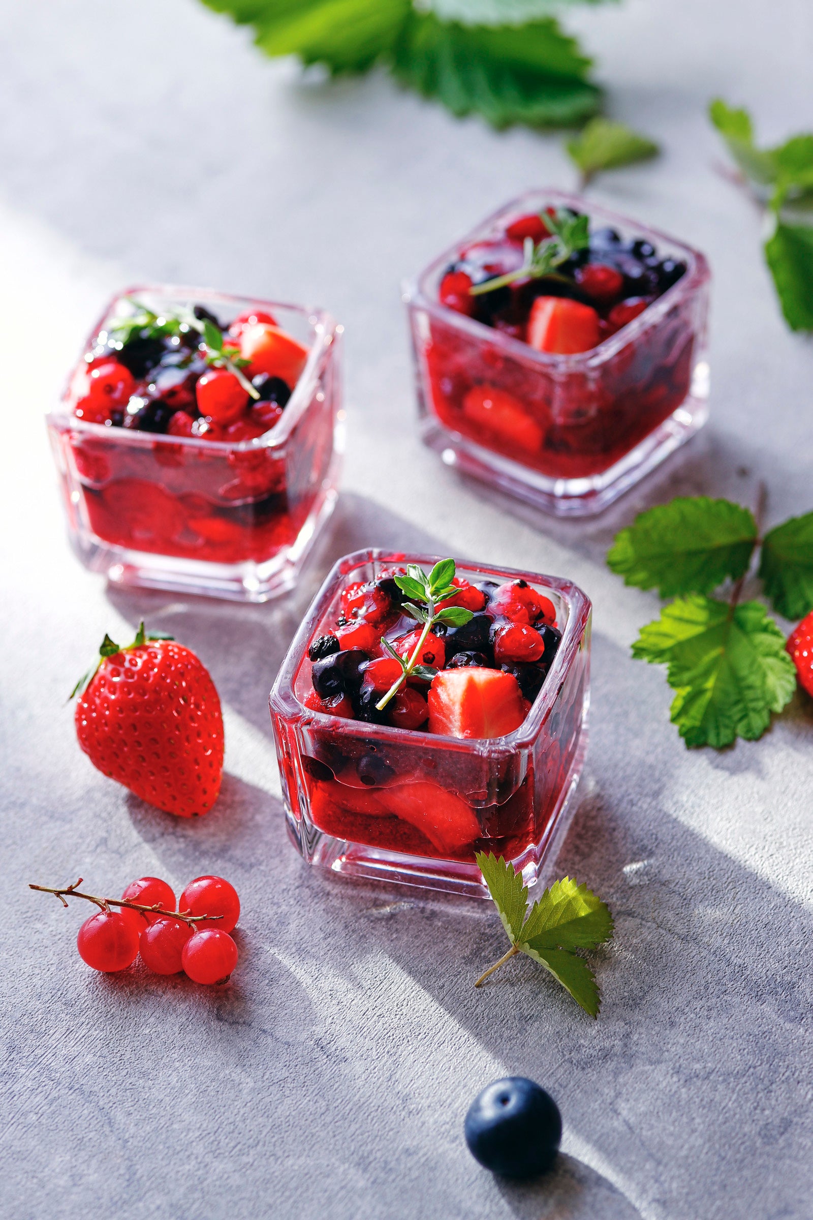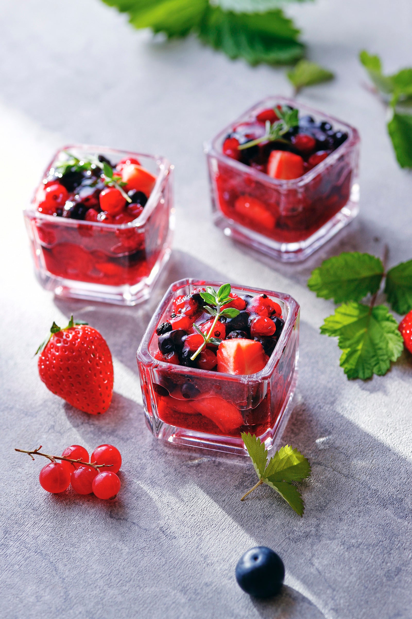 下段左から:ミックスベリーとエルダーフラワーのゼリー、ブルーベリーのシュークリーム