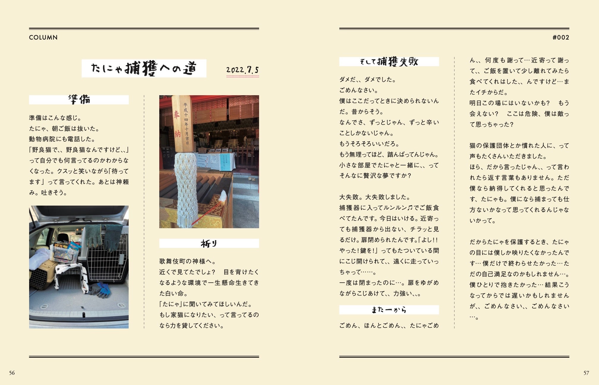 歌舞伎町での野良猫時代から家猫として暮らす現在までを追ったフォトエッセイ『歌舞伎町の野良猫「たにゃ」と僕』が8月2日に扶桑社より発売。本書の印税は猫の保護活動に使用します。