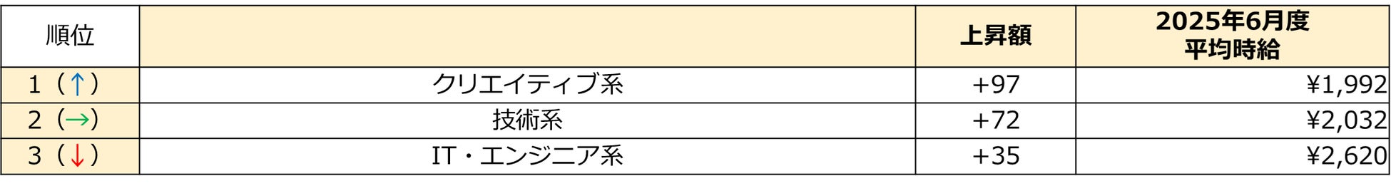 6月度の職種別/前年同月比 時給上昇額ランキング