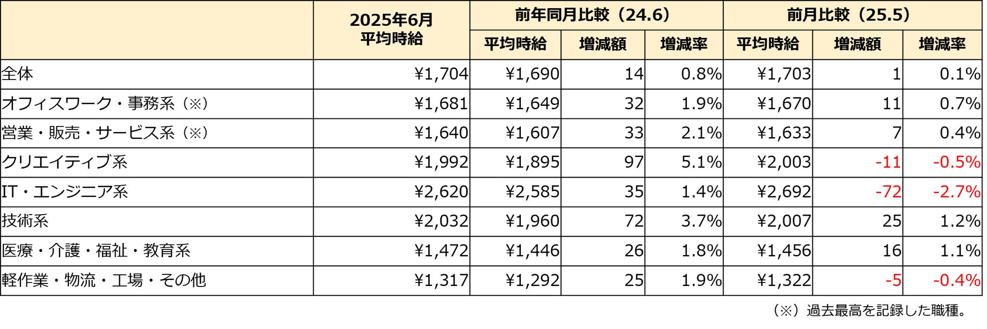 オフィス系、サービス系で2ヵ月連続の過去最高時給を記録。
