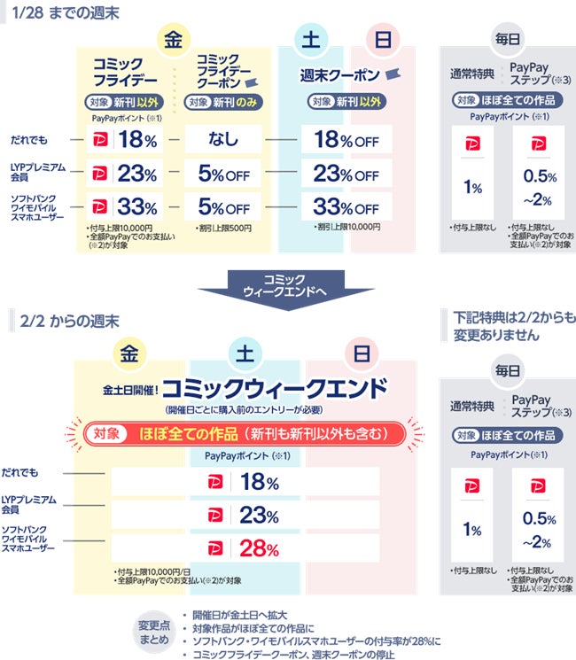 「コミックフライデー」からの主な変更点は、次の2点です。