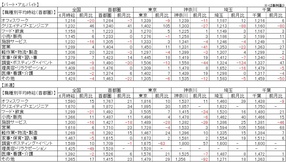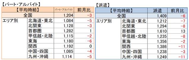 【パート・アルバイト】全国・全職種平均時給は1,204円。前月比-3円。前年同月比+25円。