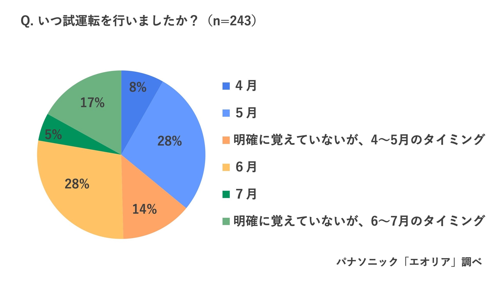 また、試運転を行ったタイミングについては、「5月」(28%)、「6月」(28%)が最多となりました。