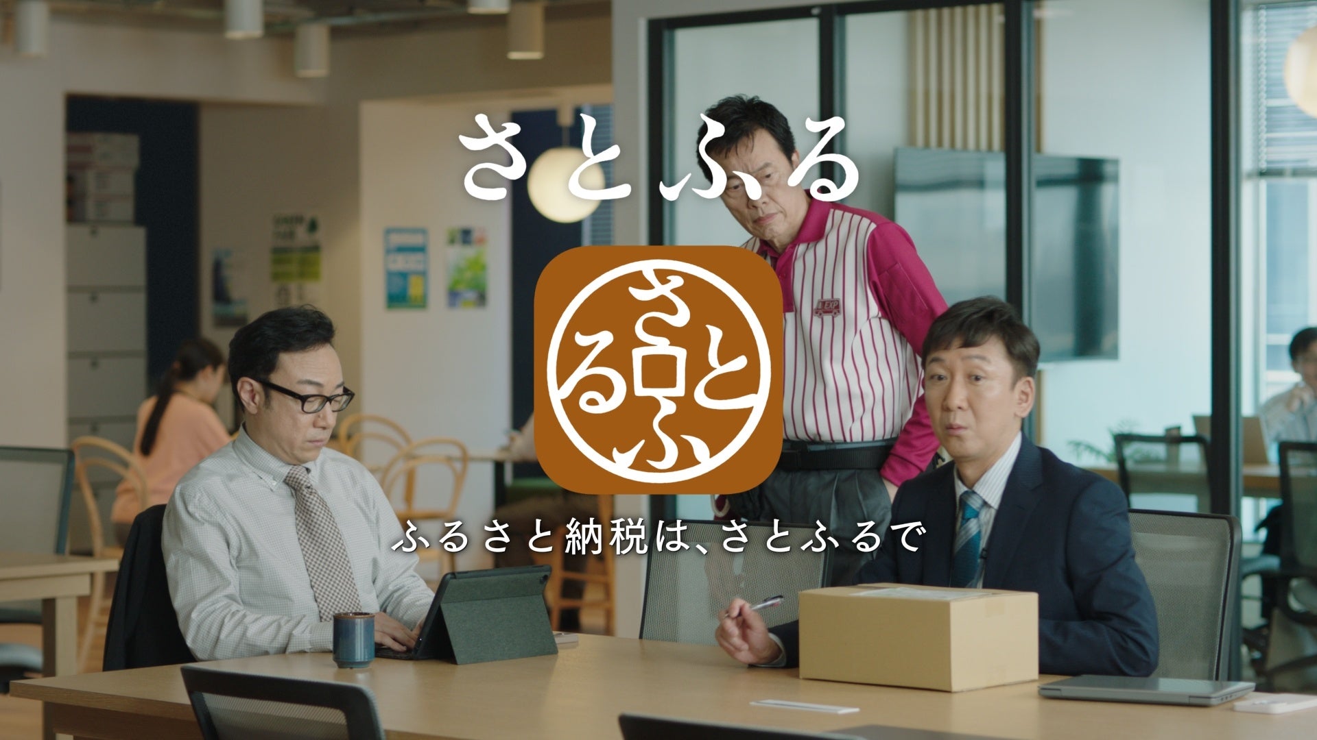 舞台は昨年に続き、飯塚さん、角田さん、河合さんが勤めるオフィスと、豊本さん、麻生さん夫婦の自宅。「達人登場」篇より、さとふるの達人として、新たに遠藤憲一さんがオフィスに登場します。オフィスではさとふる愛用者の角田さん、まだ利用経験のない飯塚さん、ついにさとふるをはじめた河合さん、そして達人である遠藤さんの会話によってストーリーが進んでいきます。豊本さん、麻生さん夫婦の自宅では、東京03の3名と麻生さんがふるさと納税のお礼品を楽しみながら、和気あいあいとした雰囲気で会話を繰り広げます。本シリーズは年末にかけ、続編を順次放映予定です。