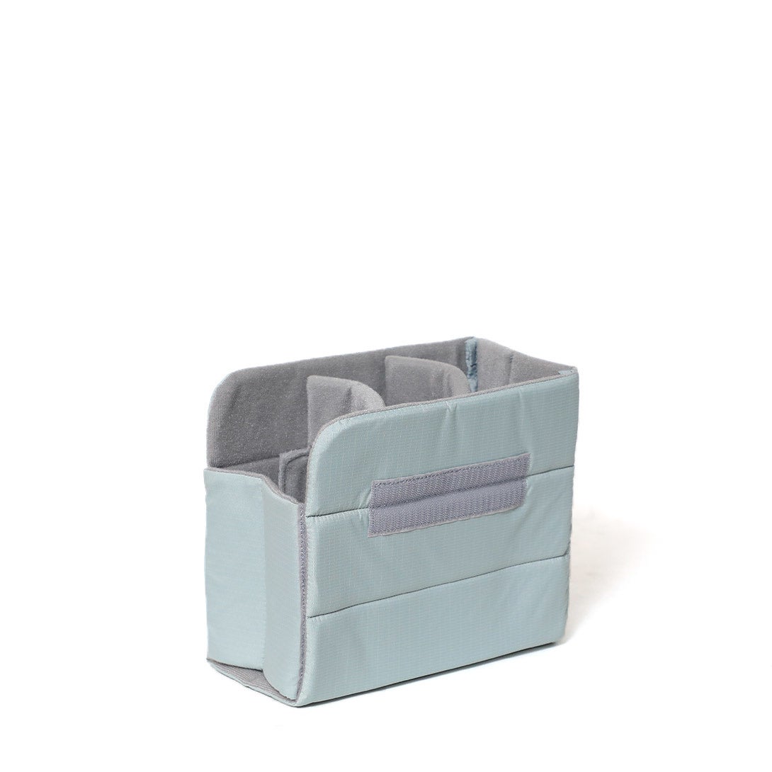 - 2室構造で下部室は、ミラーレス一眼カメラ一台、標準レンズ相当と交換レンズ2本を収納できるインナーボックスをセット