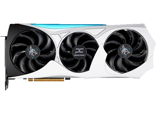 Radeon RX 9070 XTの圧倒的な性能をエレガントなREVAをあしらいアイスブルーのLEDが輝くクールな冷却システムがサポート。