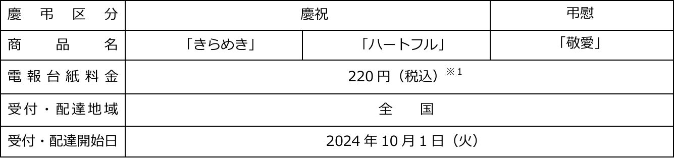 新たな慶弔用電報台紙「きらめき」、「ハートフル」、および「敬愛」の販売開始について