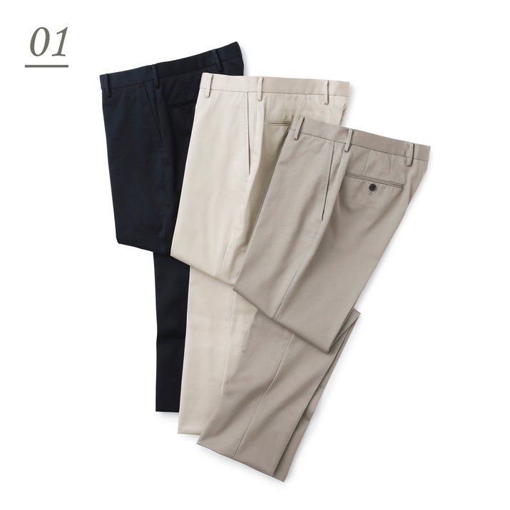 ブレザーやテーラードジャケットとのトラッドスタイルから、ニット・アウターと合わせたカジュアルスタイルまで幅広く馴染む3つのパンツにフォーカスし、その魅力と着こなしをご紹介いたします。