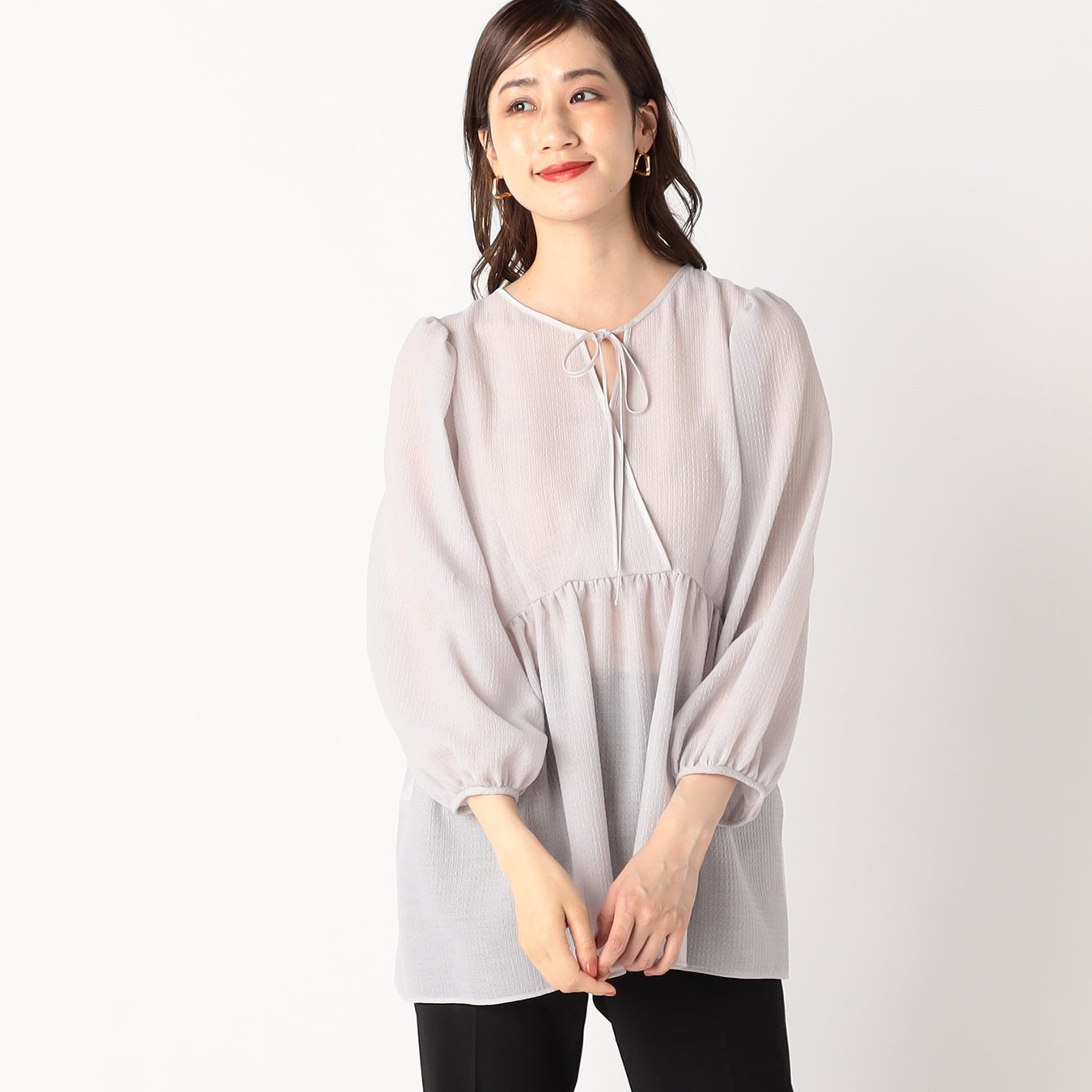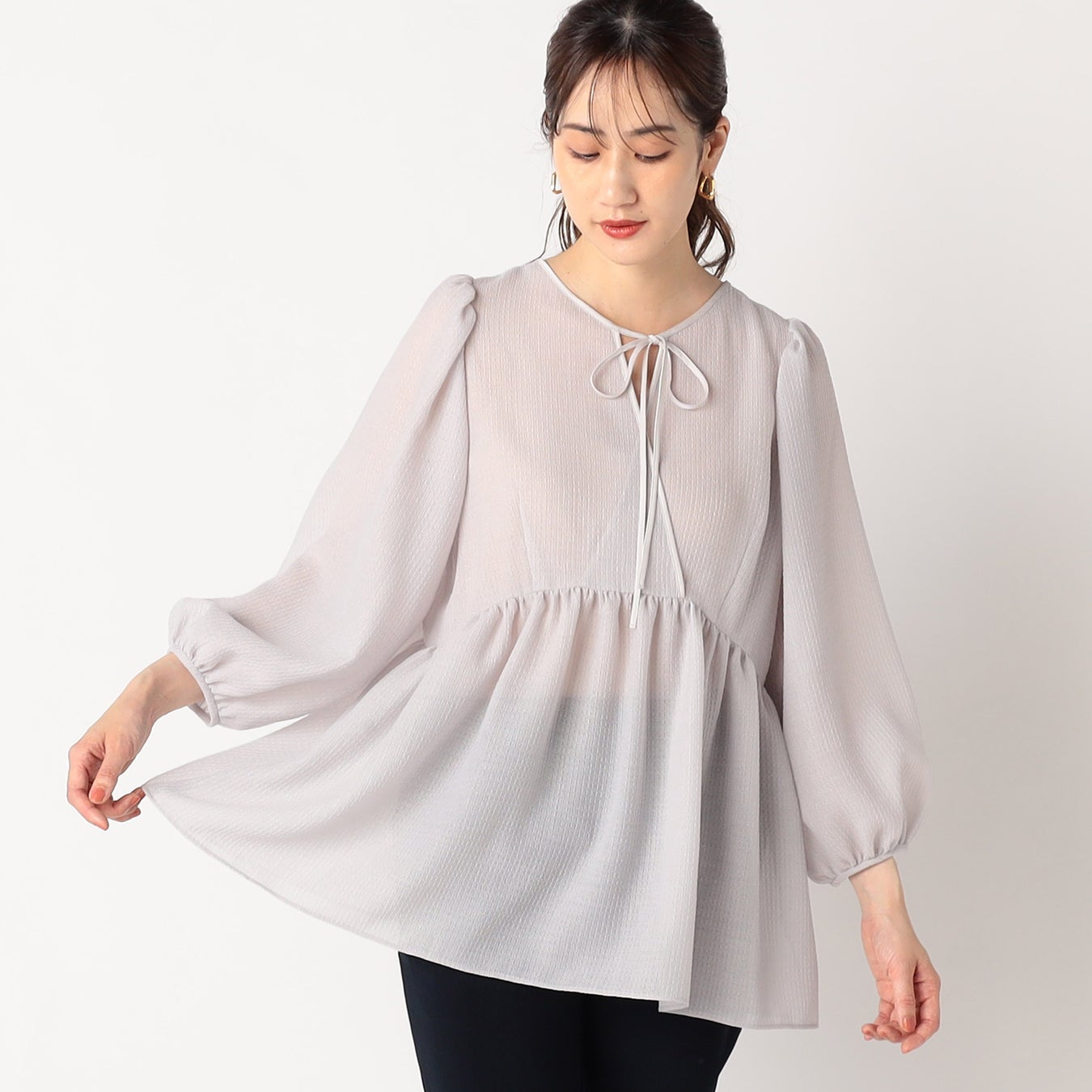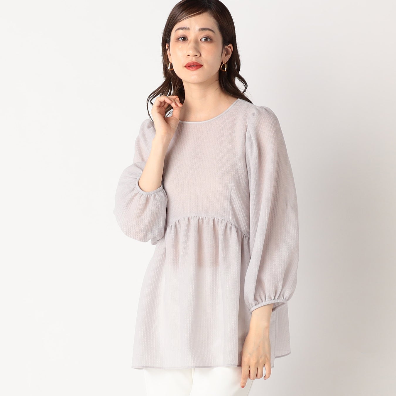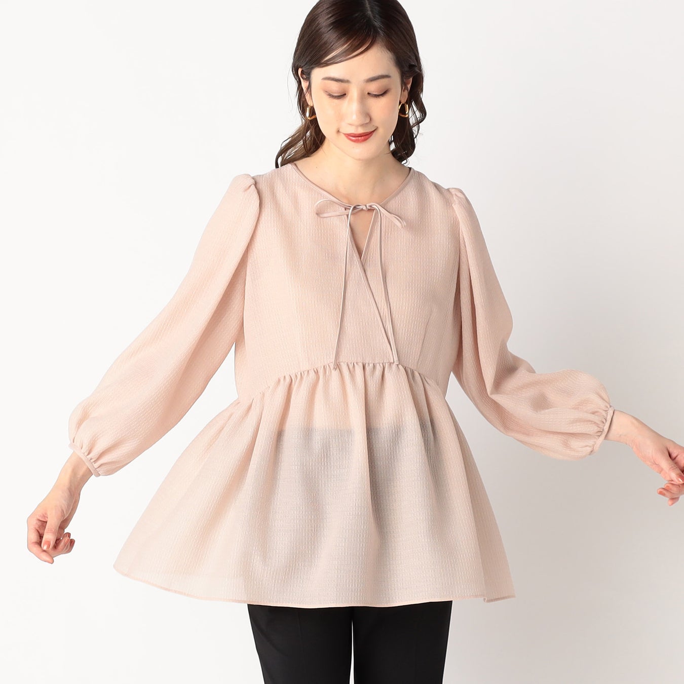 シアー感のあるペプラムブラウス