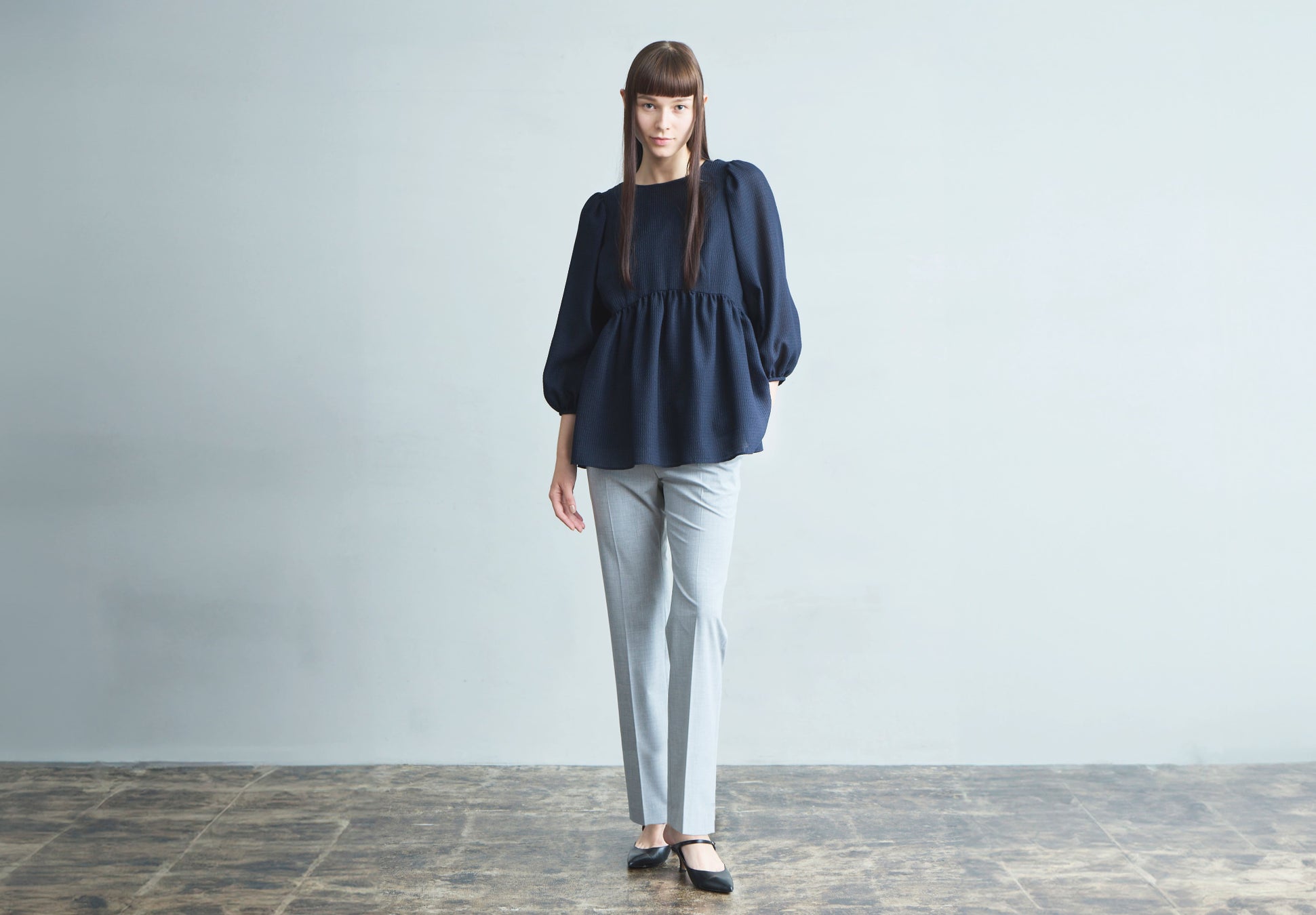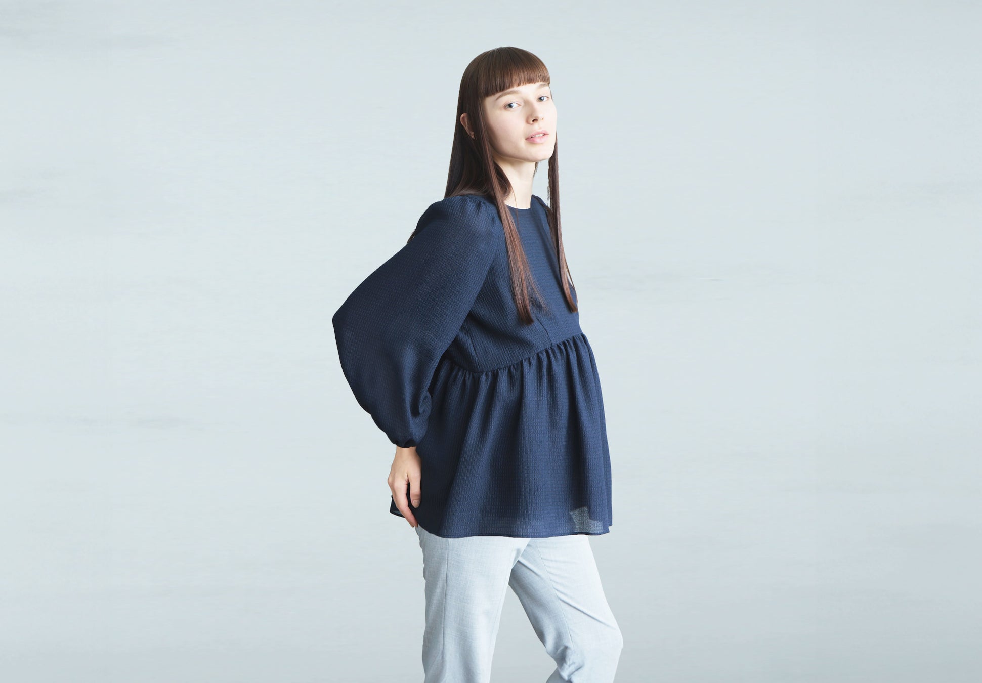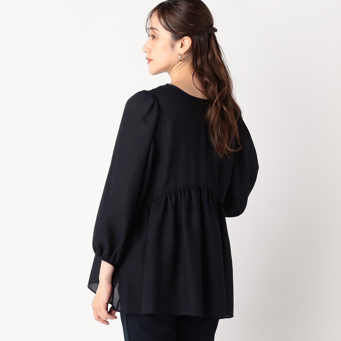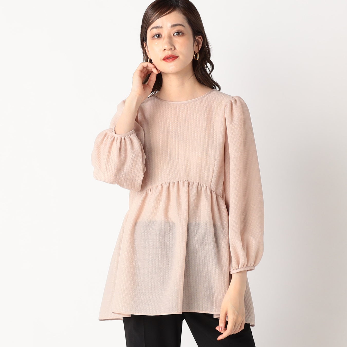 シアー感のあるペプラムブラウス