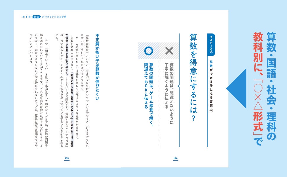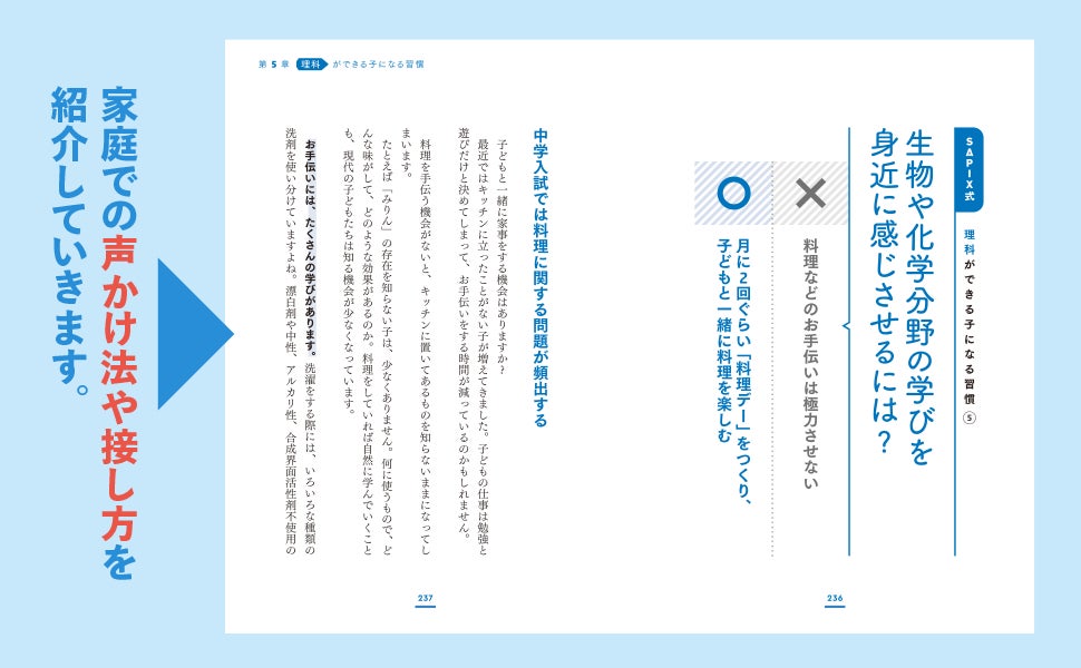 本書では、SAPIXの先生たちがコミュニケーションのポイントを紹介するとともに、SAPIX卒業生保護者が「家でやっていること」のアンケートも掲載しています。