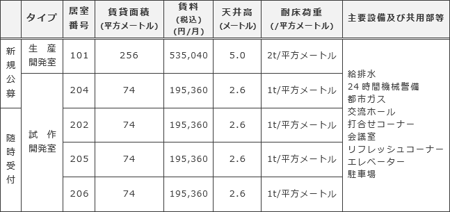 202、204、205、206号室は契約締結後すぐにご利用いただけます。