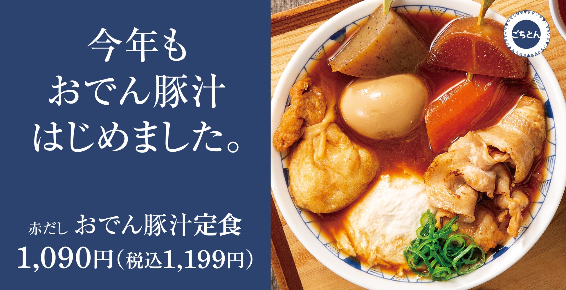一年で最も寒い時期である大寒に、温かい煮込みを食べてほしい。そんな思いで誕生した「赤だしおでん豚汁定食」を2025年1月22日(水)より、豚汁定食専門店「ごちとん」にて販売を開始いたします。