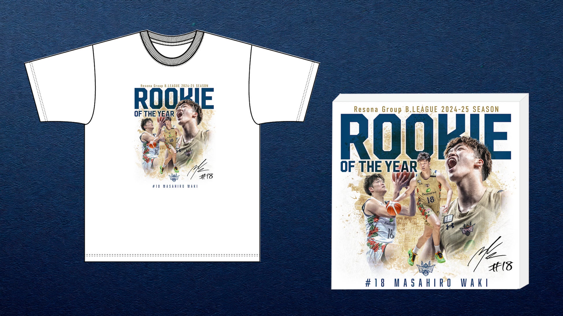 B.LEAGUE AWARD SHOW 2024-25において「新人賞」を受賞した#18 脇真大選手と、「レギュラーシーズンベストファイブ」を受賞した#4 ヴィック・ロー選手の記念グッズを、キングス公式オンラインショップとアリーナショップにて販売します。