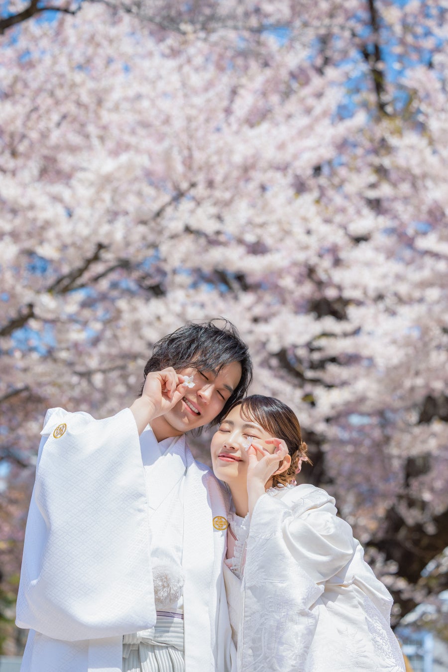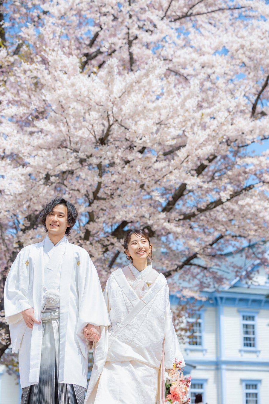 満開の桜に包まれた中島公園で、お二人の今までとこれからを想像しながら、結婚という幸せを改めて実感していただけるような時間に。