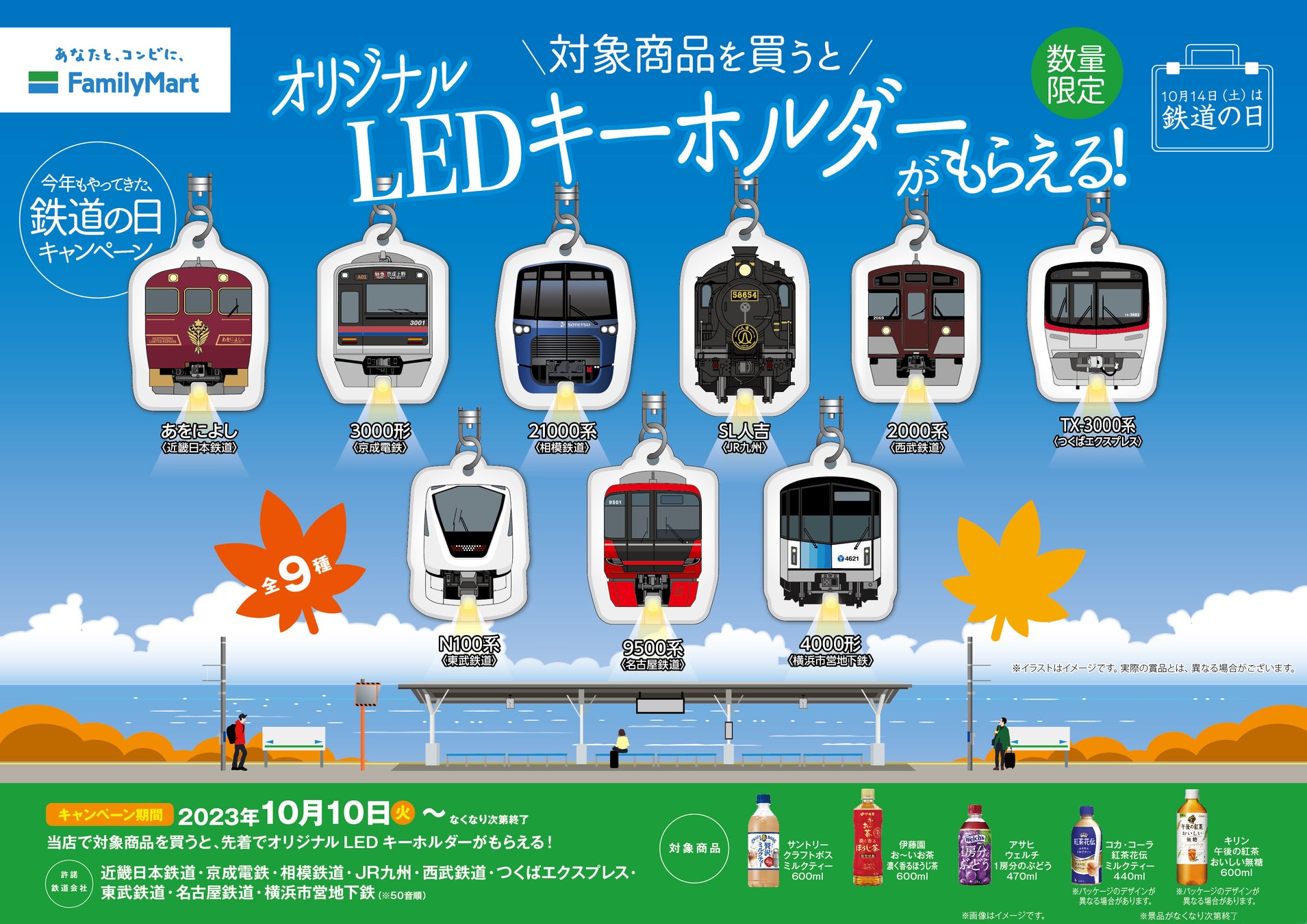 今年も開催!ファミリーマート×鉄道会社9社合同企画 各社の人気鉄道車両をデザインした「オリジナルLEDキーホルダーがもらえる!」キャンペーン10月10日(火)からスタート!