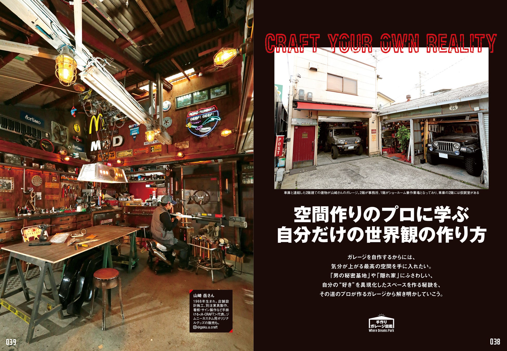 特集の巻頭では、5人のDIYerが手掛けたガレージ工房を紹介。セルフビルド、カーポート改造、倉庫リノベーション、スチール物置……とアプローチの違う方法で生み出した創作空間とアイデアは必見です。車やバイクを愛でつつ、木工や家具作り、レザークラフトに溶接など、もの作りをフルスロットルで楽しむ男たちの物語をお楽しみください。