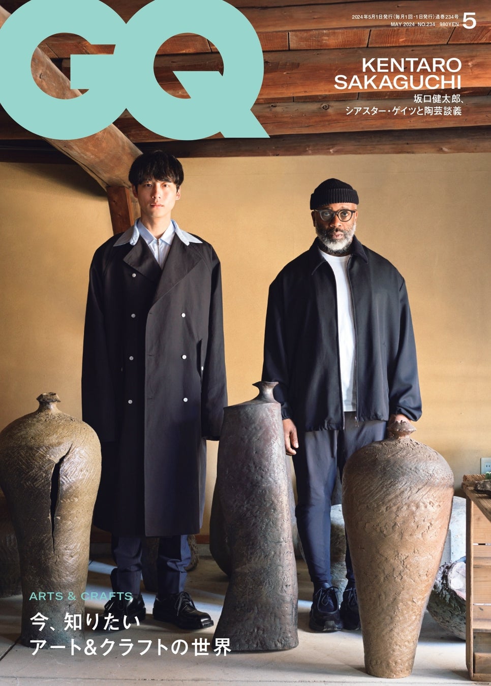 最新号の表紙を飾るのは、俳優の坂口健太郎と森美術館で個展を開催するアメリカ人アーティストのシアスター・ゲイツ。以前から陶芸に興味をいだいていたという坂口が、注目のアーティストで、日本の陶芸文化に深く影響を受けたシアスター・ゲイツの愛知県常滑市にある制作拠点を訪れた。陶芸への深い理解を示す坂口とゲイツが意気投合し、ゲイツのバックグラウンドから陶芸のスタイル、歴史までを二人で熱く語る陶芸談義をお見逃しなく。ほかにも、藤原ヒロシによる陶芸家・黒田泰蔵のアトリエ訪問、民藝コレクターの自宅紹介など、『GQ JAPAN』独自の視点でアートとクラフトの世界を取り上げる。また、京都で「村上隆 もののけ 京都」展を開催中の村上隆とJP THE WAVYが語るコラボレーションの裏側、幾田りら×あのがダブル主演した映画『デデデデ』、“ほぼ100%ノンフィクション”のヤングスキニーの恋愛ソングについてリーダーのかやゆーが語る真意、さらにはハリウッド共同制作オリジナルドラマの配信を4月に控えている渡辺謙が考える世界基準など、盛りだくさんの内容でお届けする。