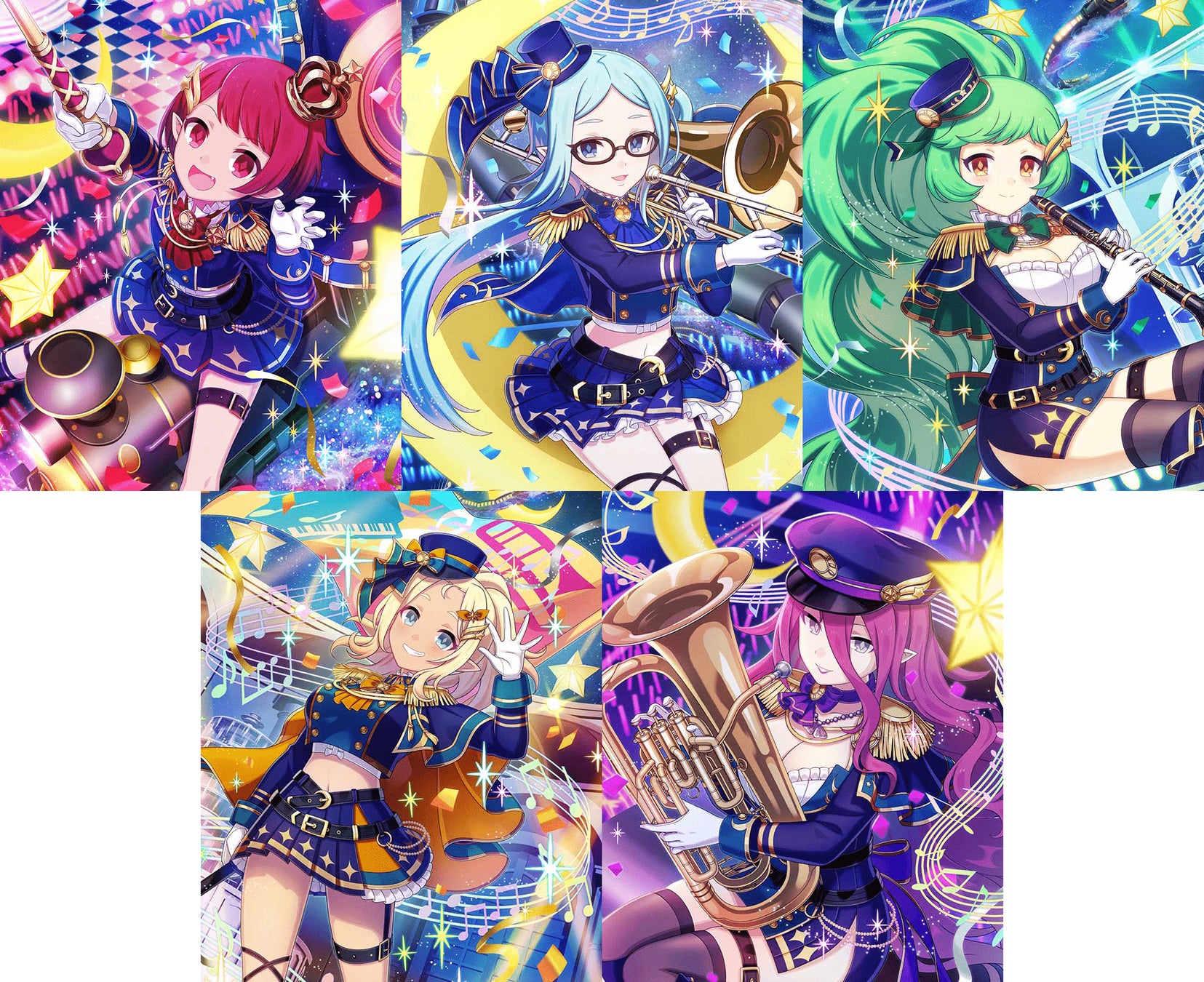 イベント開催にあわせて、9周年衣装を纏い、楽器などを持ってマーチングバンドに挑む【究曲奏】シリーズの5悪魔が登場するガチャの販売を開始いたしました。