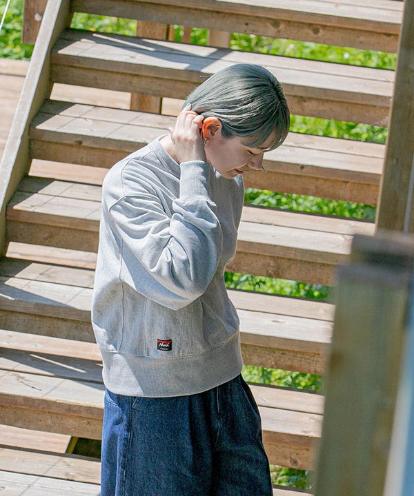 NANGA とのコラボレーションにて生まれたシンプルなスウェットシャツは、環境に配慮したリサイクルコットン Ferre Yarn(フェレーヤーン)を使用。コラボネームを右裾にステッチオンしたデイリーに使いやすいアイテムです。