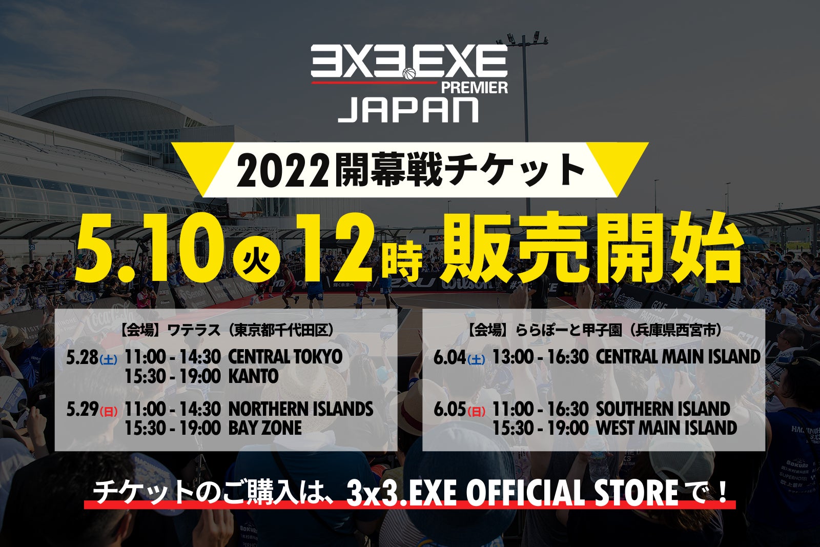 ゼビオグループのクロススポーツマーケティング株式会社(本社:東京都千代田区 代表取締役社長:中村 考昭)が運営する3人制バスケットボールのグローバルリーグ「3x3.EXE PREMIER」は、5月28日(土)~29日(日)にワテラス(東京都千代田区)、6月4日(土)~5日(日)にららぽーと甲子園(兵庫県西宮市)で行われる「3x3.EXE PREMIER JAPAN 2022」男子開幕戦の観戦チケットを5月10日(火)12:00より、「3x3.EXE OFFICIAL STORE」で販売を開始いたします。