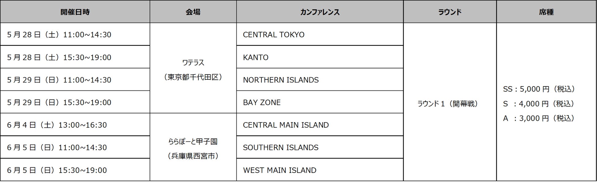 ※ラウンド2以降の観戦チケットは、各開催2週間前ごろ(予定)に販売を開始いたします。