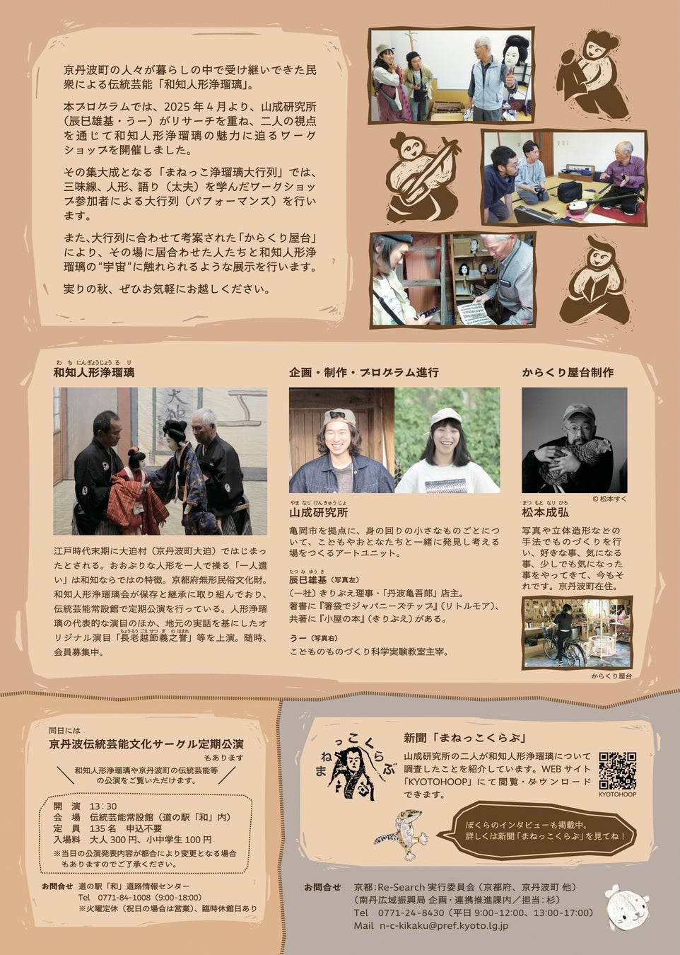 〈令和7年度京都府地域プログラム(南丹)まねてまねぶ伝統芸能「まねっこ浄瑠璃」について〉