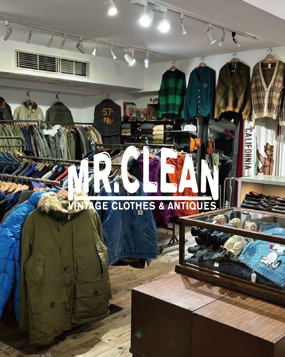 VINTAGEシーンを牽引する栗原氏が手掛けるヴィンテージショップ「MR.CLEAN」のSHOP IN SHOPを開催します。ヴィンテージの洋服から、バンダナやぬいぐるみ、ポストカードなどの雑貨まで、今回のポップアップショップのためにセレクトしたアイテムを多数ご用意しました。