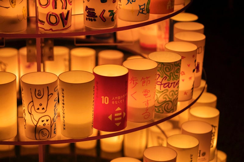 SDGsの17の目標にちなみ、17色のキャンドルが彩る「キャンドルスポット」。去年登場し人気を集めた「キャンドルツリー」は、去年より1本多く3本登場し、それぞれ次のような願いを込めています。