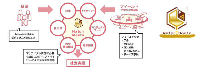 名古屋市および民間施設等を社会実証の場(フィールド)として活用するために、場の提供と課題の整理・解決をするネットワークコミュニティです。産学官で協力し、実証ニーズとフィールドをマッチングし、「プロジェクトの創出」と「先端技術の社会実装」を進め、さまざまな課題に対して企業や団体が先端技術を使った解決方法の実証ニーズを実現します。