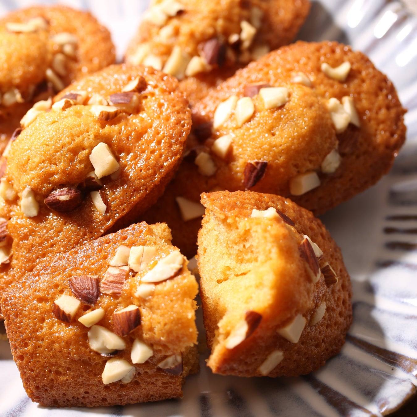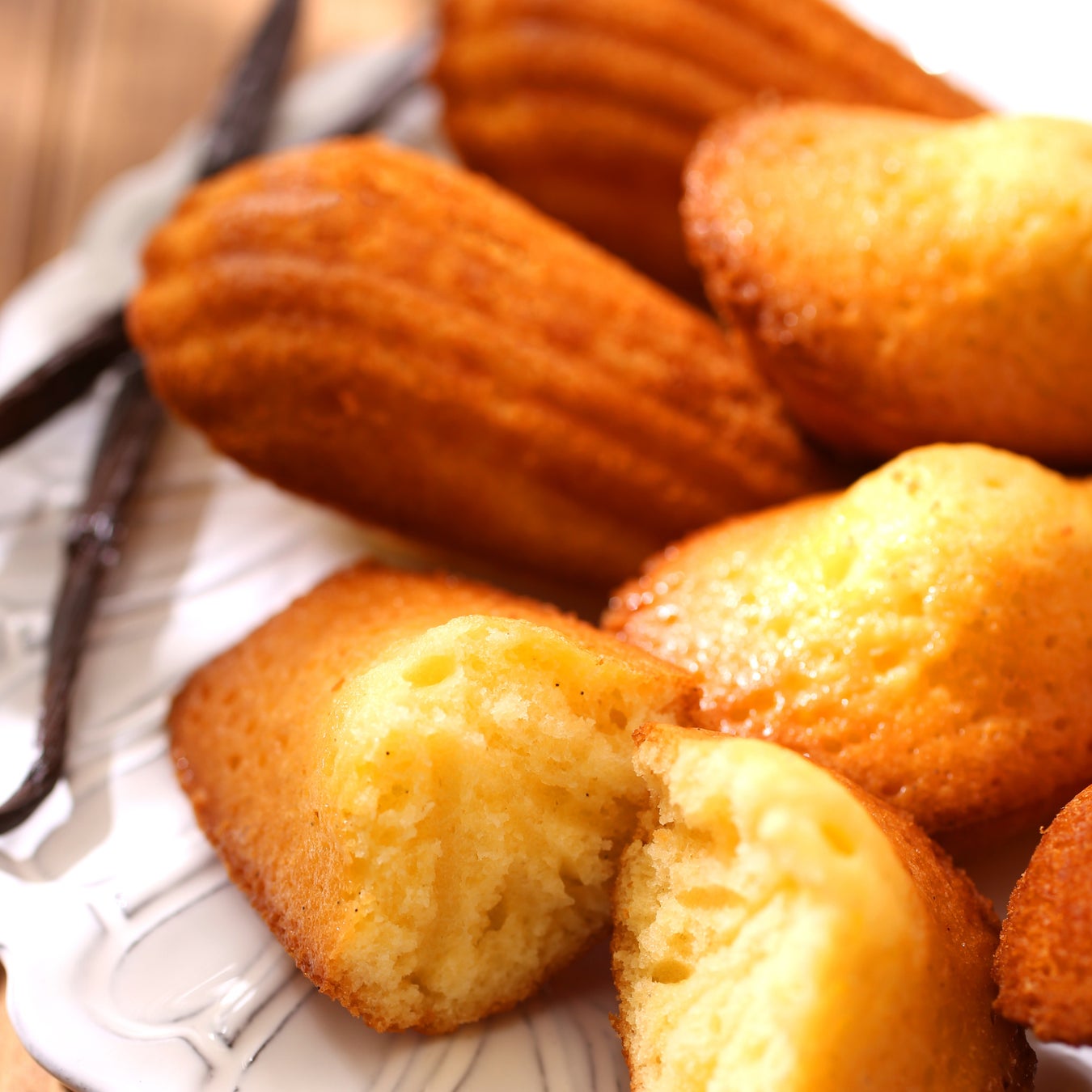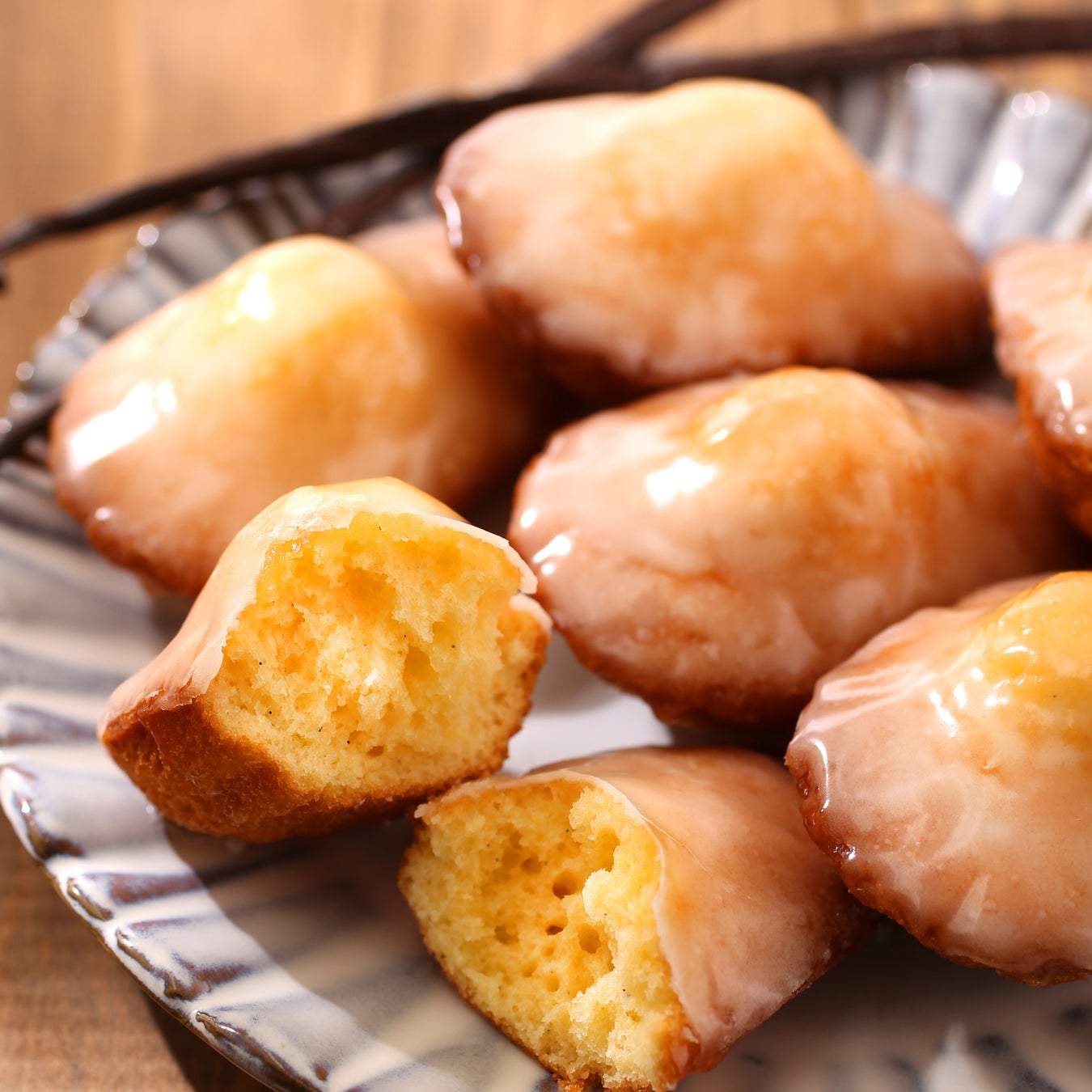 マダガスカル産バニラビーンズを使用。卵とバターの生地にはちみつを加え、ふんわりしっとり焼き上げました。バターやバニラビーンズの優しい風味が口いっぱいに広がります。