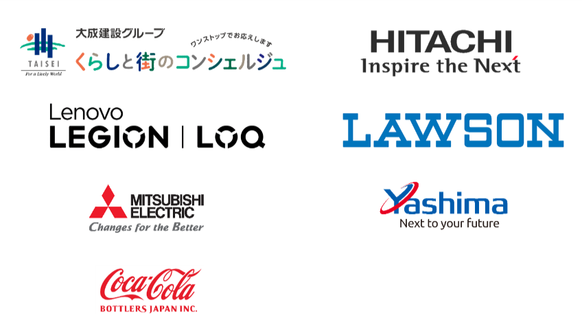 大成建設株式会社、株式会社日立製作所、レノボ・ジャパン合同会社、株式会社ローソン、三菱電機株式会社、八洲電機株式会社、コカ・コーラボトラーズジャパン株式会社