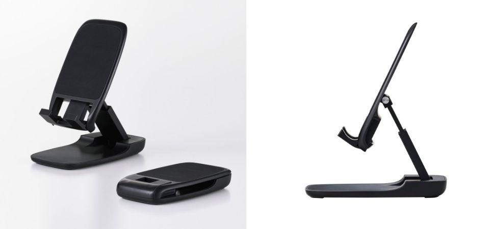 コンパクト設計で持ち運びや収納にも便利!角度を自由に調節可能な薄型、折り畳み式のスマートフォン・タブレットスタンドを新発売