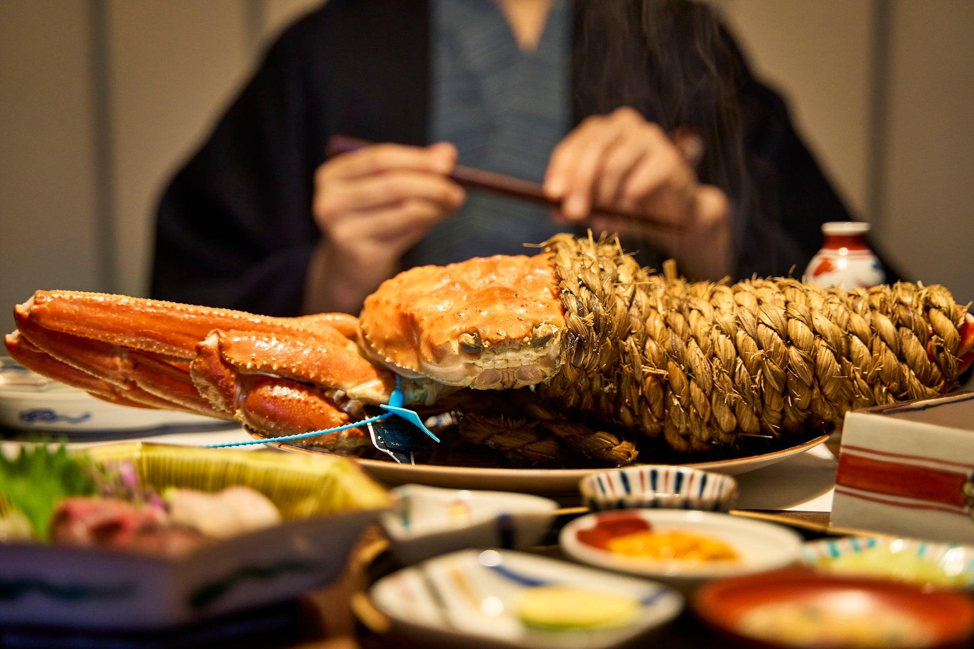 多くの生活者がコロナ禍をきっかけにひとりで過ごす経験をしたことで、ひとり行動に対する価値観は変化し、ひとりの時間を大切にする傾向が高まっています。ひとり意識・行動調査では、約56%の回答者が、他の誰かと過ごすよりもひとりで過ごす方が好きと答えています(*1)。おひとり様市場が拡大する中で、ズワイガニの会席やコースをひとりで食べられる場所はまだまだ少ない状況です。また、旅のニーズも多様化していることから、ひとりでも旬のグルメを贅沢に楽しみたいというニーズに合わせ、界では2021年より「ひとり蟹会席」の提供を開始しました。宿泊者からは「自分のペースで気兼ねなく蟹を味わうことができた」や「一人ではなかなか予約できない蟹会席を、ひとり旅でも楽しめてよかった」とコメントがありました。昨年度は、ひとり旅の顧客のうち約半数の方が「ひとり蟹会席」を予約しており、さらに高まることが予想されるニーズに応えられるよう、今年も「ひとり蟹会席」の提供に至りました。産地や品質の保証を示すタグが付いたタグ付きの活蟹を、界ではひとりでも楽しめるよう、施設ごとに特色のある食べ方や調理法で提供します。爪、脚、だき身や蟹味噌など、それぞれがもつ旨味、甘さ、食感などを、蟹一杯分まるごと味わい尽くせます。