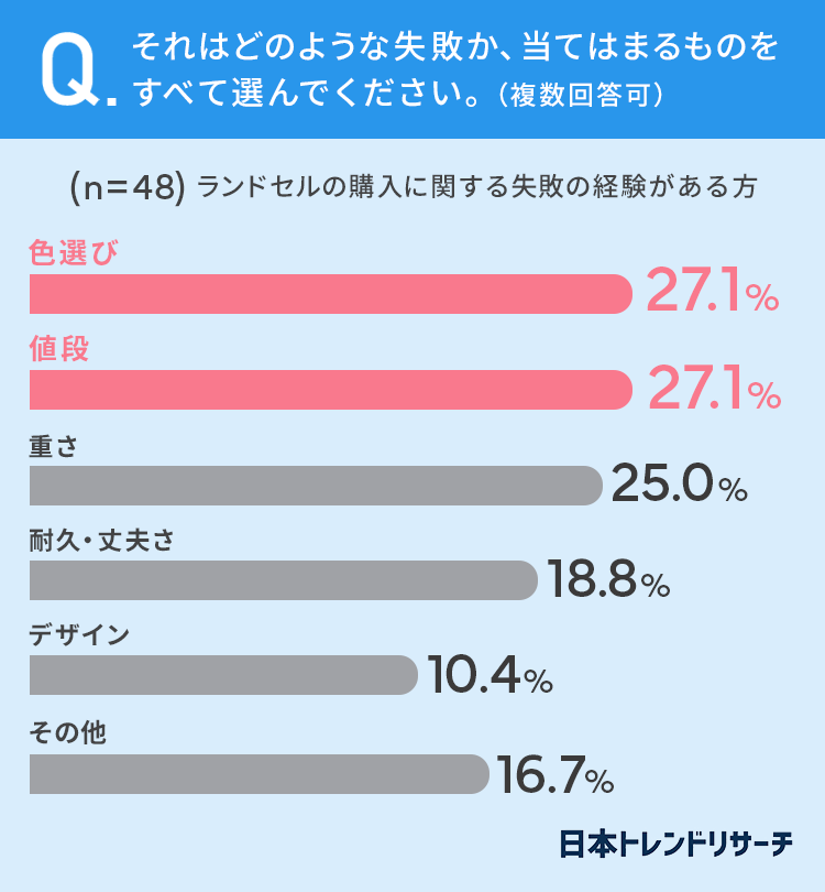日本トレンドリサーチ・ランドセル購入時の失敗に関する調査